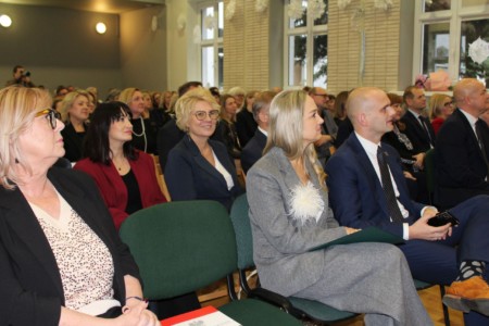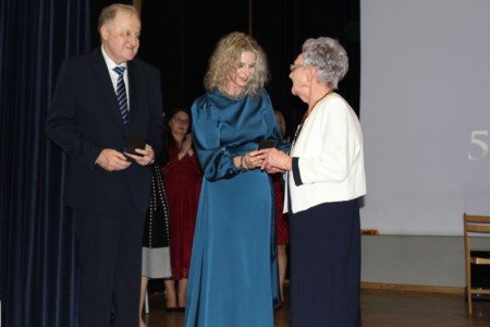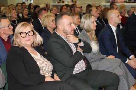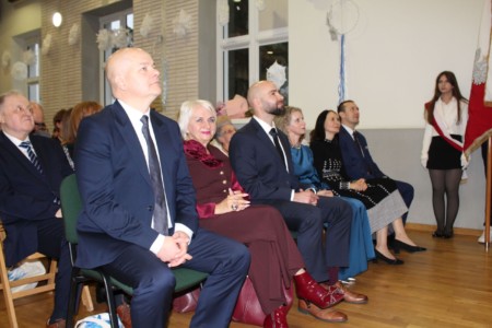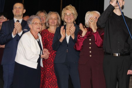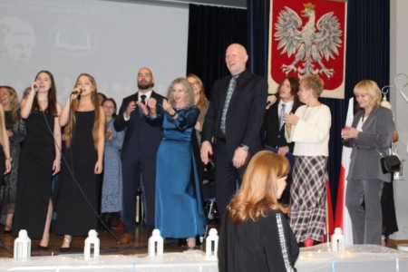 O godz. 13.30 spotkaliśmy się w auli szkoły, gdzie odbyła się oficjalna część jubileuszu. Wręczono nagrody i odznaczenia osobom szczególnie zasłużonym dla naszej społeczności, a całość dopełnił wyjątkowy spektakl wokalno-multimedialny w wykonaniu młodzieży, który został nagrodzony gromkimi brawami oraz wspólnym finałem odśpiewanym na scenie wraz z całą społecznością i zaproszonymi gośćmi.