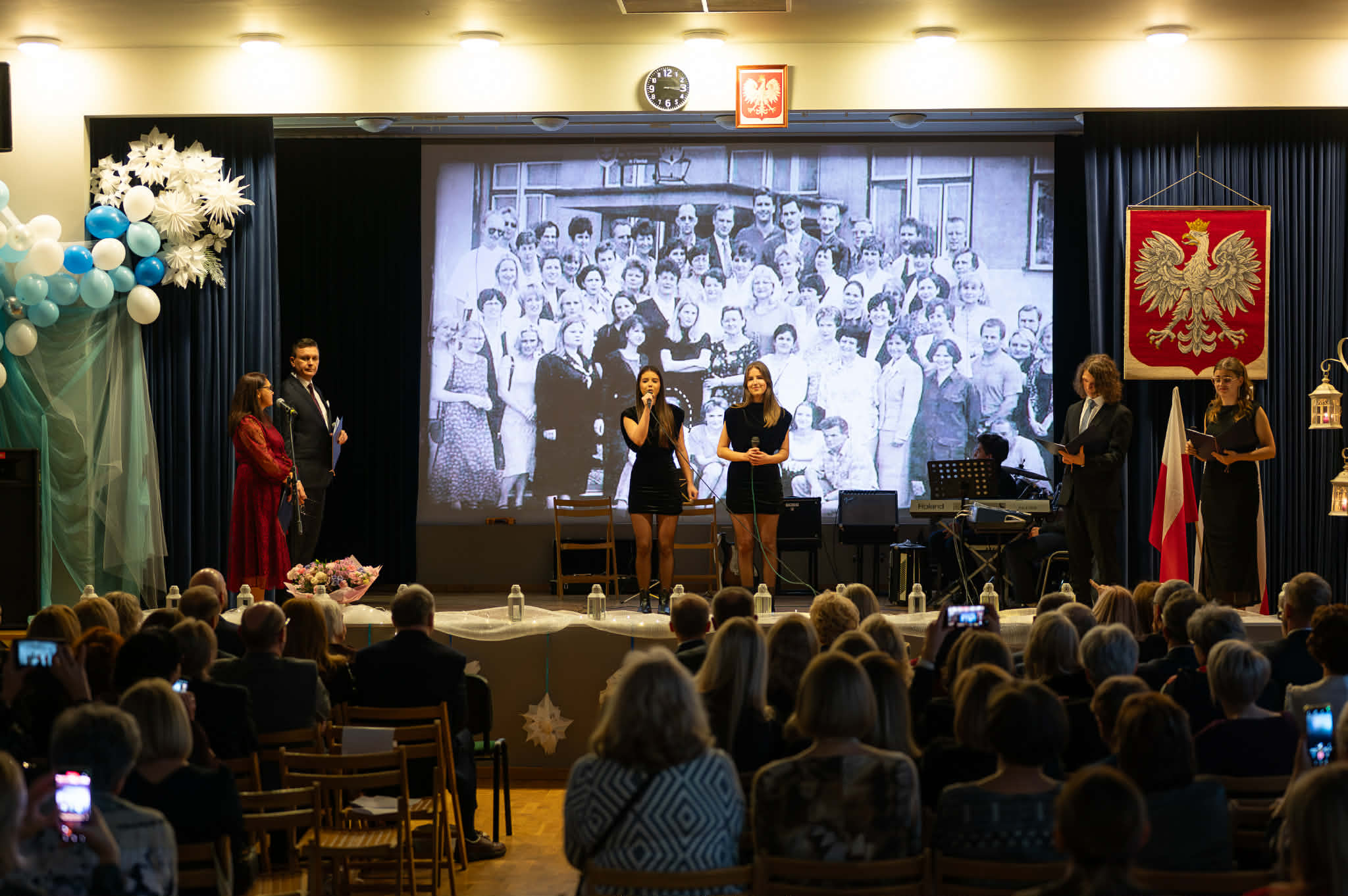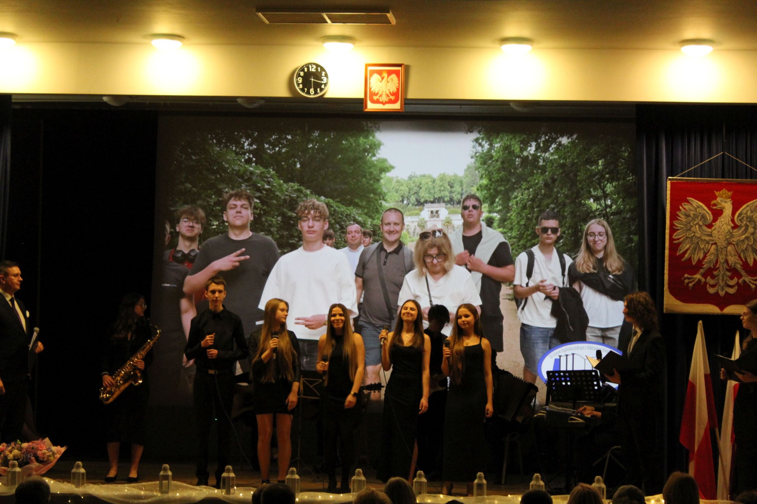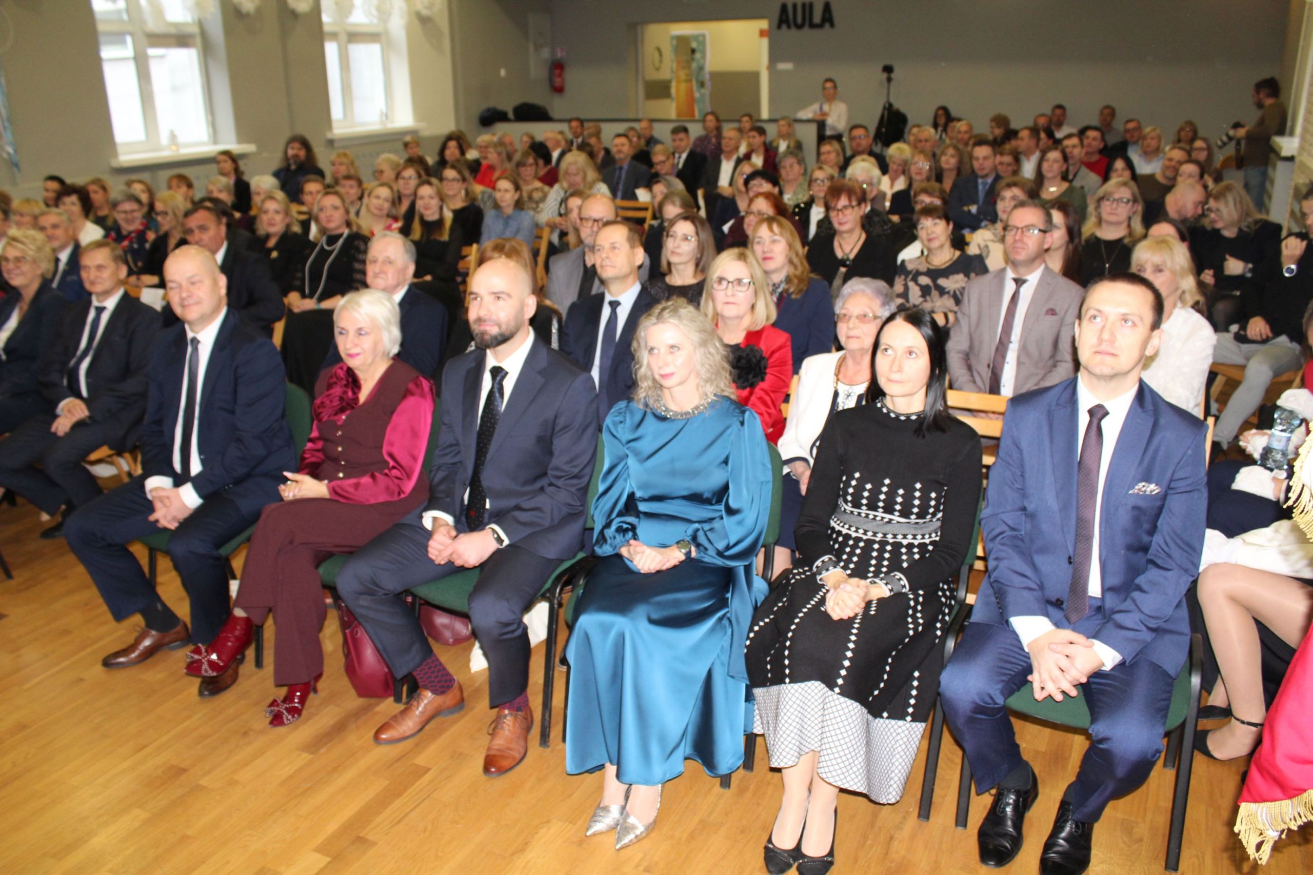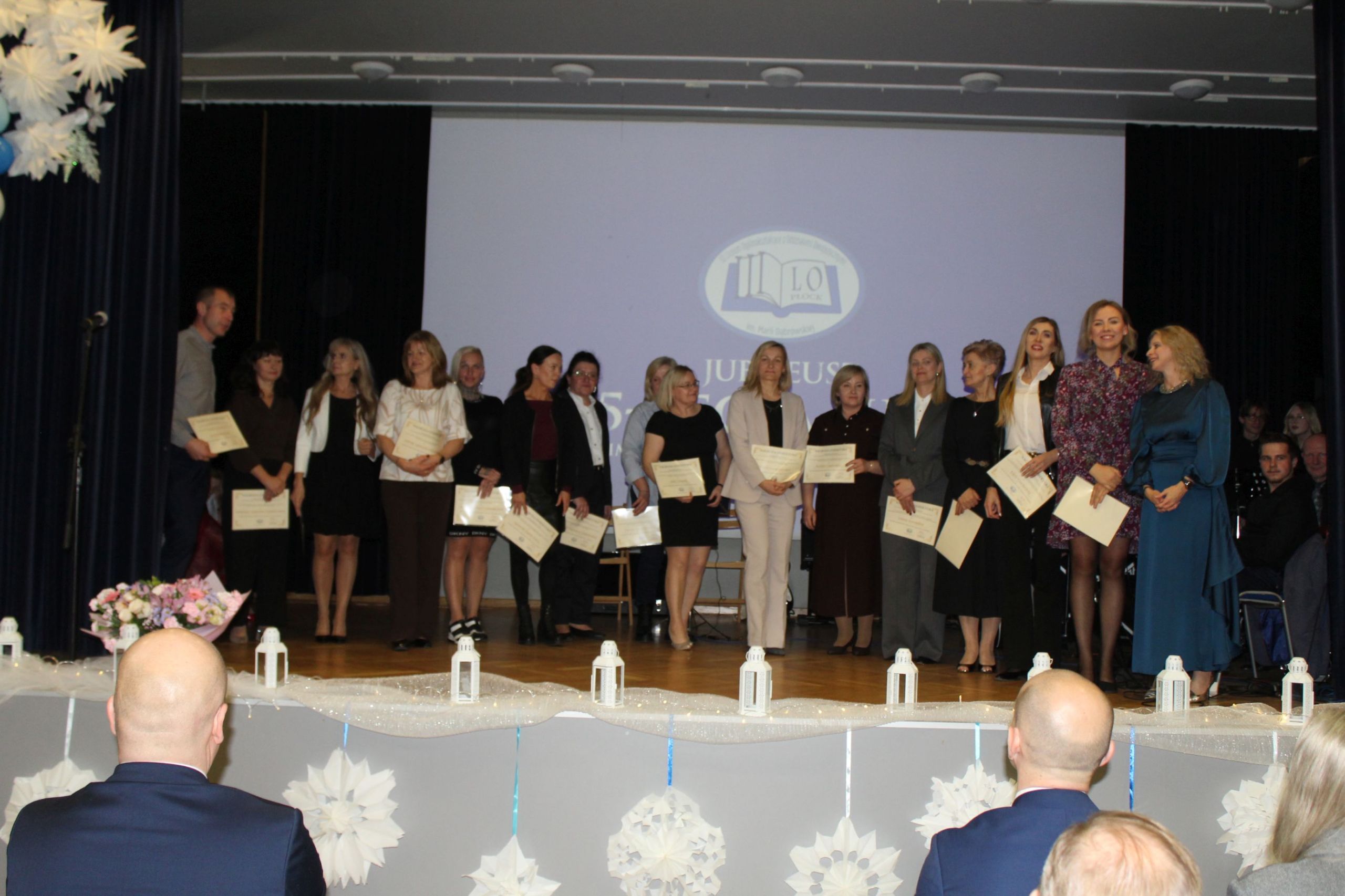 O godz. 13.30 spotkaliśmy się w auli szkoły, gdzie odbyła się oficjalna część jubileuszu. Wręczono nagrody i odznaczenia osobom szczególnie zasłużonym dla naszej społeczności, a całość dopełnił wyjątkowy spektakl wokalno-multimedialny w wykonaniu młodzieży, który został nagrodzony gromkimi brawami oraz wspólnym finałem odśpiewanym na scenie wraz z całą społecznością i zaproszonymi gośćmi.