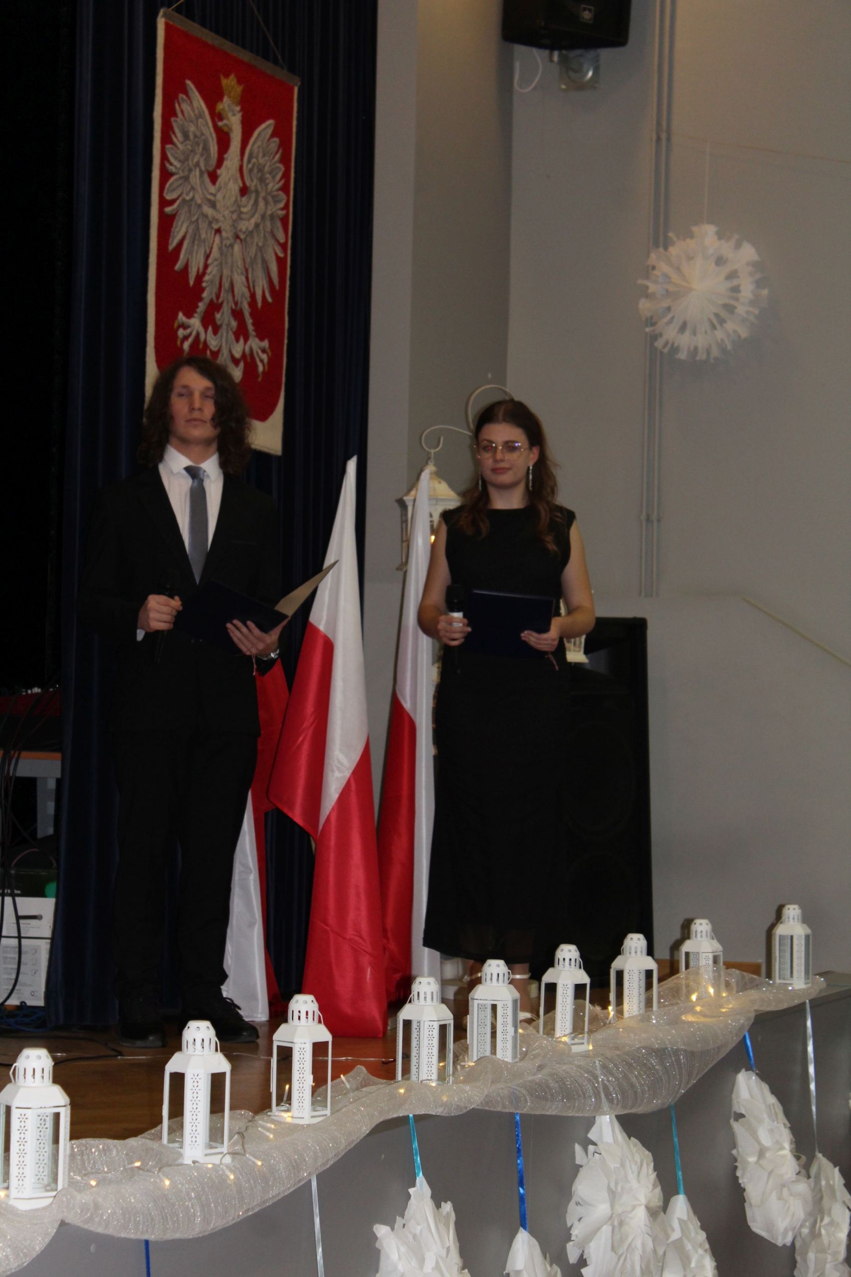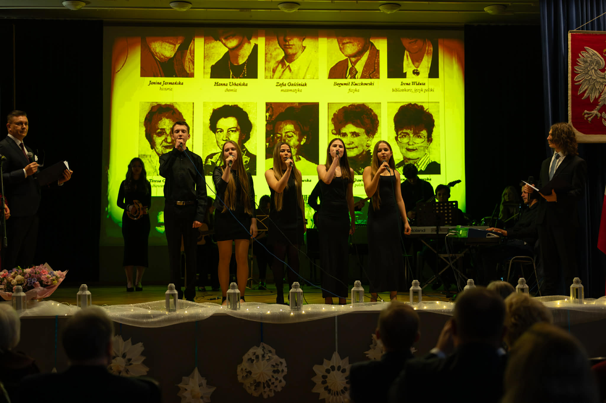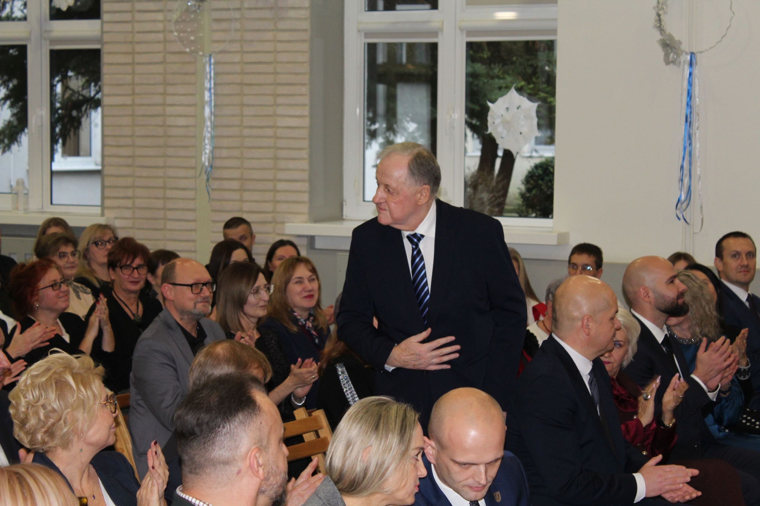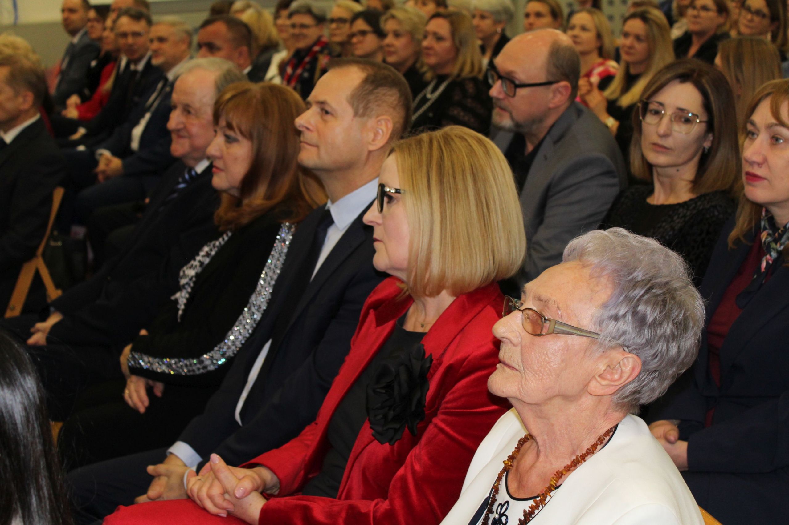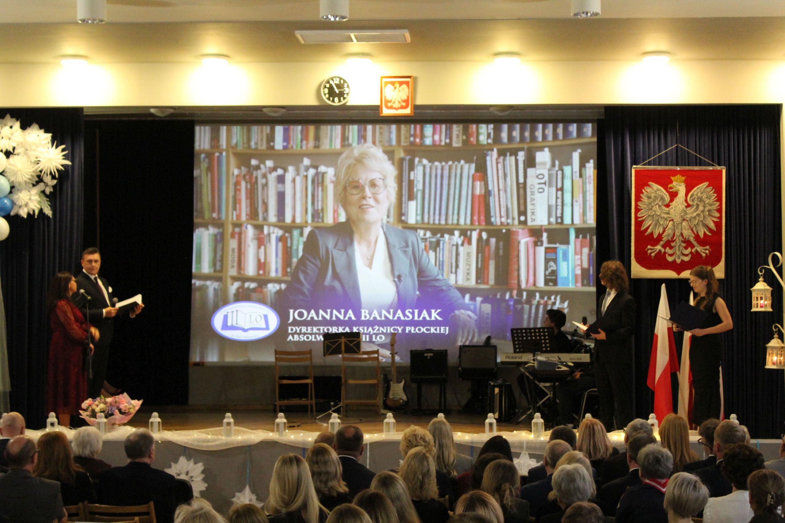 O godz. 13.30 spotkaliśmy się w auli szkoły, gdzie odbyła się oficjalna część jubileuszu. Wręczono nagrody i odznaczenia osobom szczególnie zasłużonym dla naszej społeczności, a całość dopełnił wyjątkowy spektakl wokalno-multimedialny w wykonaniu młodzieży, który został nagrodzony gromkimi brawami oraz wspólnym finałem odśpiewanym na scenie wraz z całą społecznością i zaproszonymi gośćmi.
