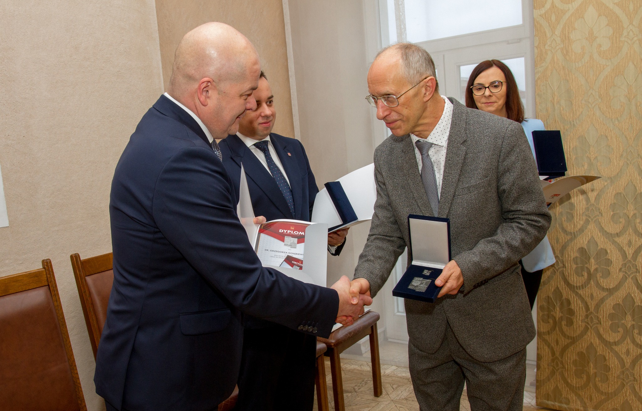Podczas uroczystości Prezydent Miasta Płocka wręczył medale przygotowane z okazji jubileuszu 200-lecia ratusza. Wyróżnienia te stanowią wyraz uznania dla osób szczególnie zaangażowanych w działalność na rzecz lokalnej społeczności oraz rozwoju edukacji.