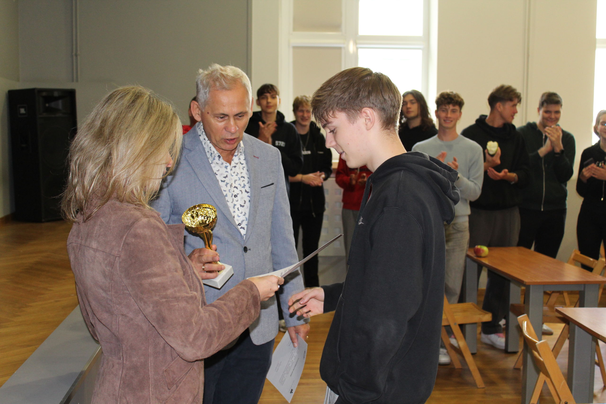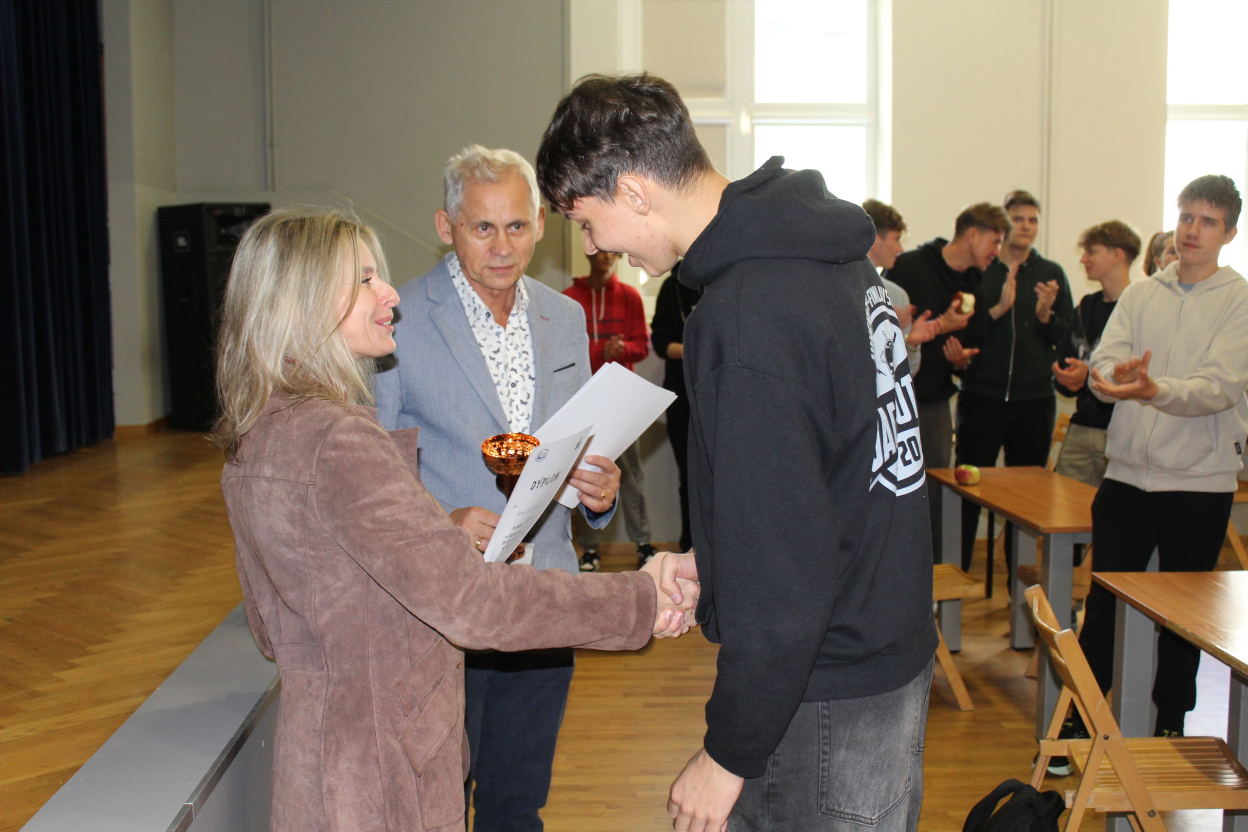 Puchary zakupiono z funduszy III LO. Zawody otworzyła oraz wręczyła puchary i dyplomy Pani Dyrektor Małgorzata Starzyńska.